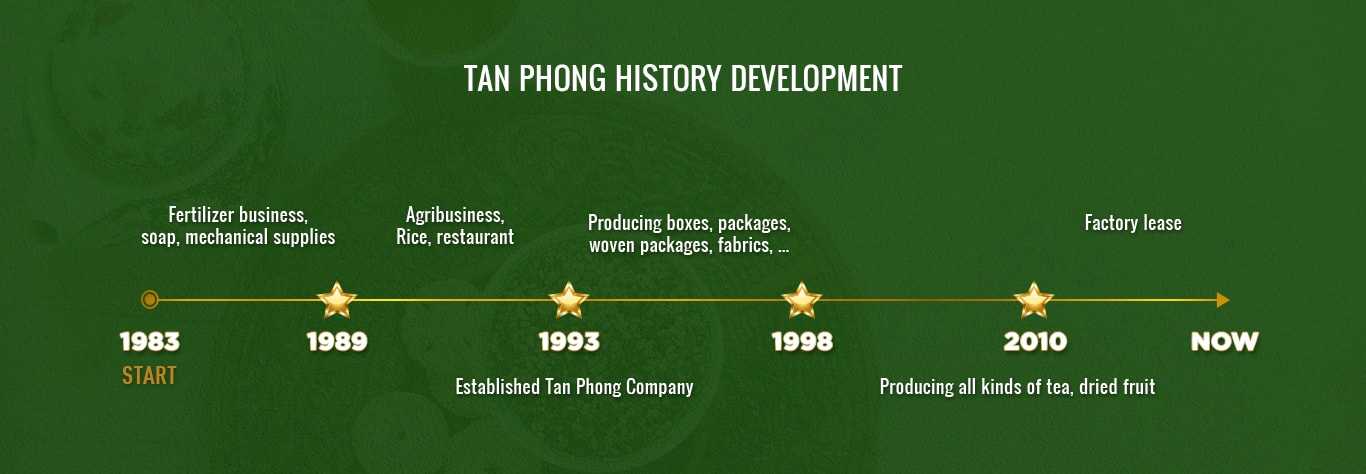 Becoming a pioneer in the distribution of regional dry specialties, quality and origin of products such as traditional tea products, marinated tea, dried fruits, dried spices to consumers. in Vietnam market. Vision to 2020 brings Tan Phong brand to reach nationwide market, elevating Vietnamese brand.
